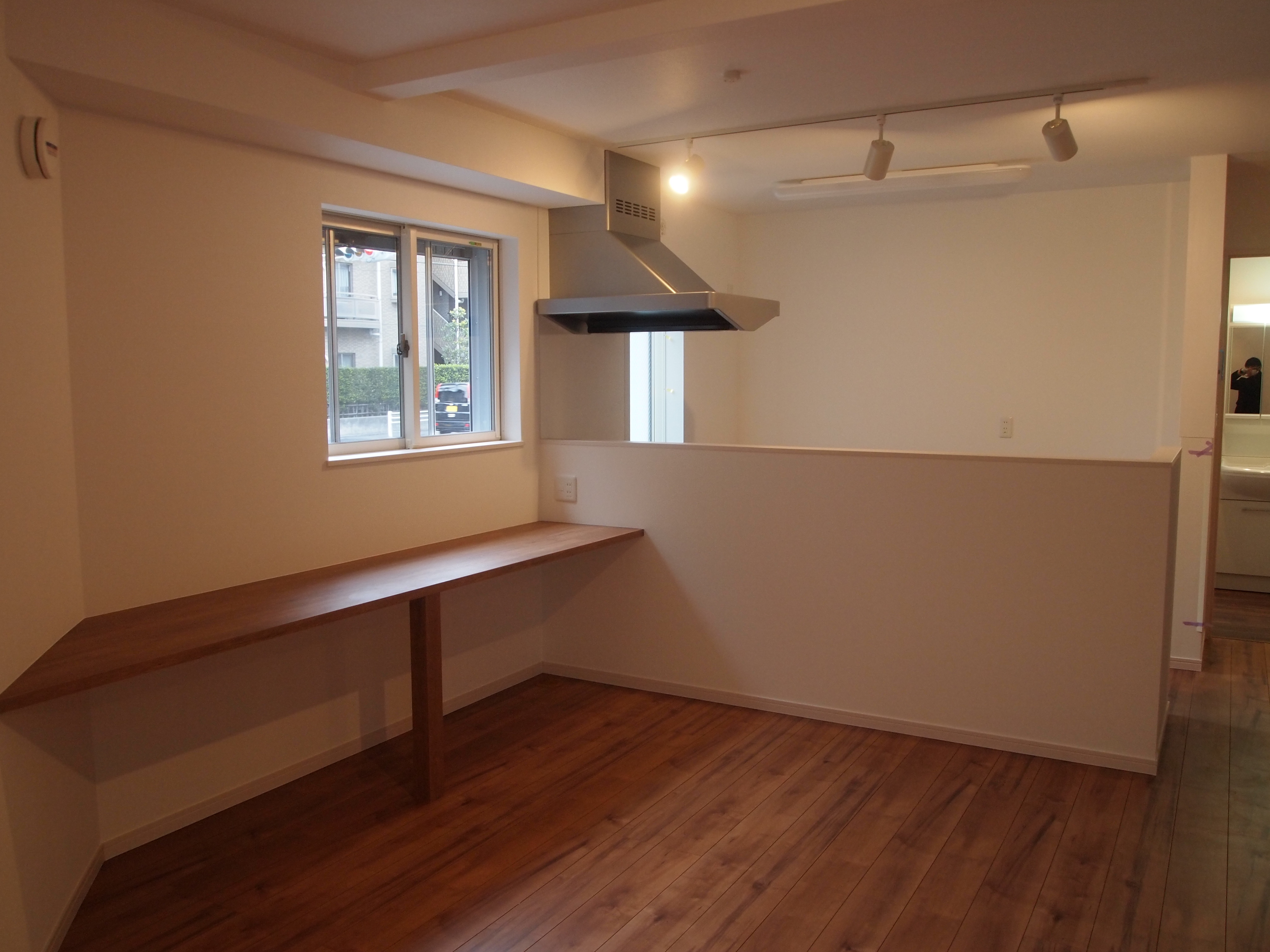 キッチン前に、造りつけのワークスペースをつくりました。