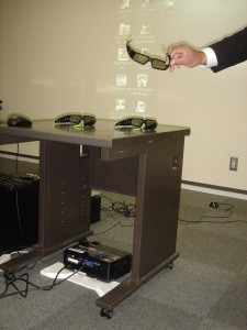 ←が実際に使用する3D用のプロジェクタとグラスです。