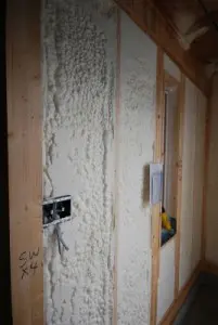 先日当社の葛飾区高砂zero-eの壁内に、吹き付けタイプの発泡ウレタン断熱「ecomoco」(エコモコ)が入りました