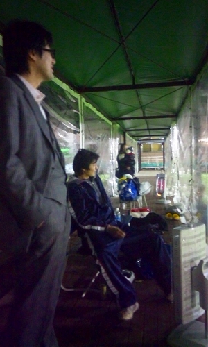 左:2日後の山登りに備え、筋肉痛になりたくなかった小川