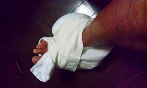 夜中まで氷でキンキンに冷やして、どうにか腫れずに済みました。