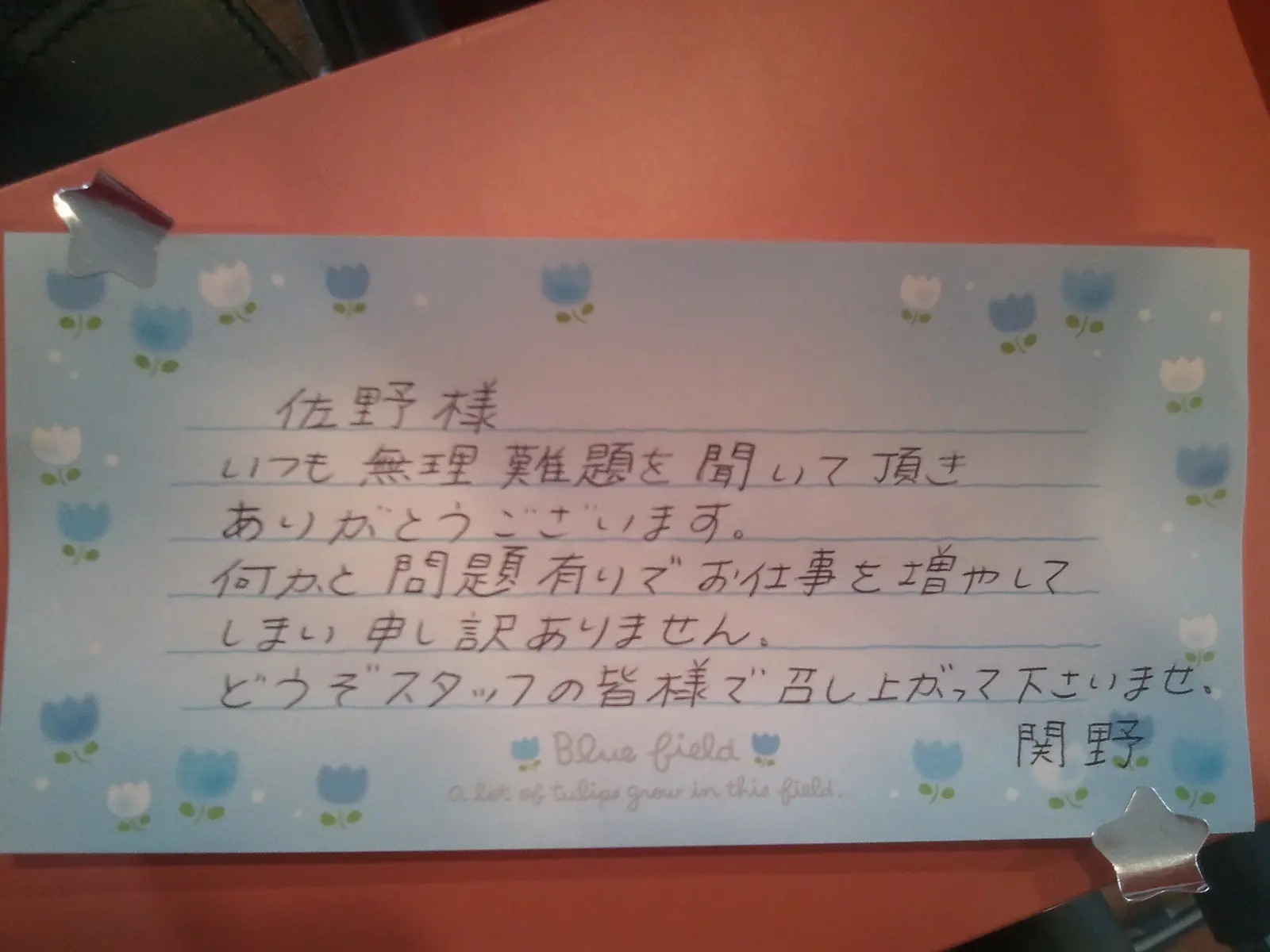 来週にお引渡しのS様より、弊社スタッフ全員にとお菓子を頂きました。