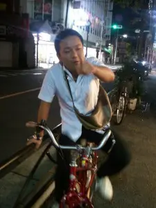 新しい自転車を購入した設計リーダー 藤村も上機嫌