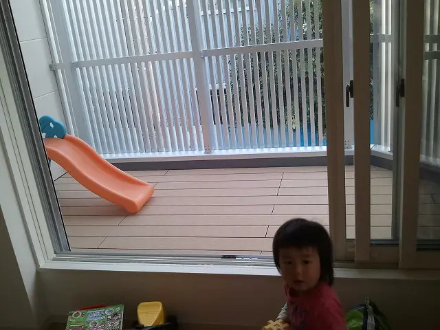 リビングからつながる広々バルコニーにはウッドデッキを敷きました!