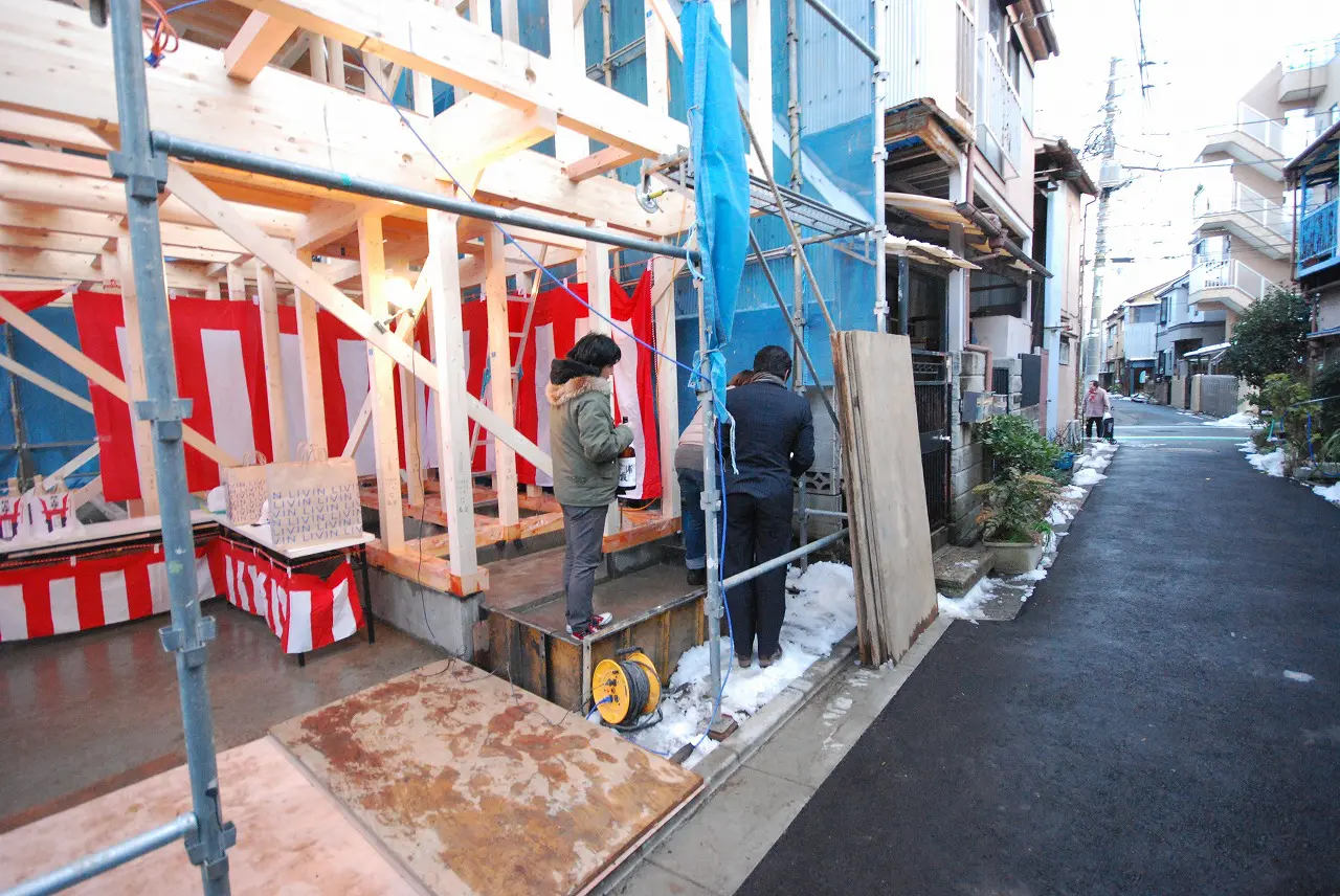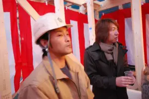 1/24(火) 上棟式の準備がギリギリ間に合い設計部リーダー、仕入部リーダーも駆けつけてくれましたよ。