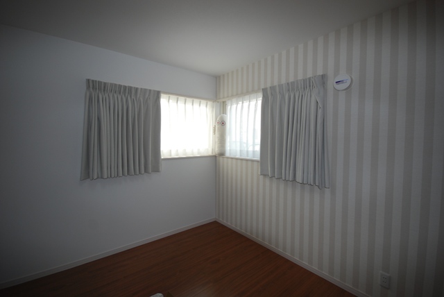 主寝室は床とアクセントクロスにN様が選んだカーテンも調和していて落ち着けるお部屋になっていました。(おばけ?のぬいぐるみがかわいいですね♪)