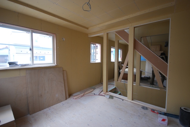 これは建築中の写真と、完成お引き渡し後にN様が家具を配置なさった写真です。