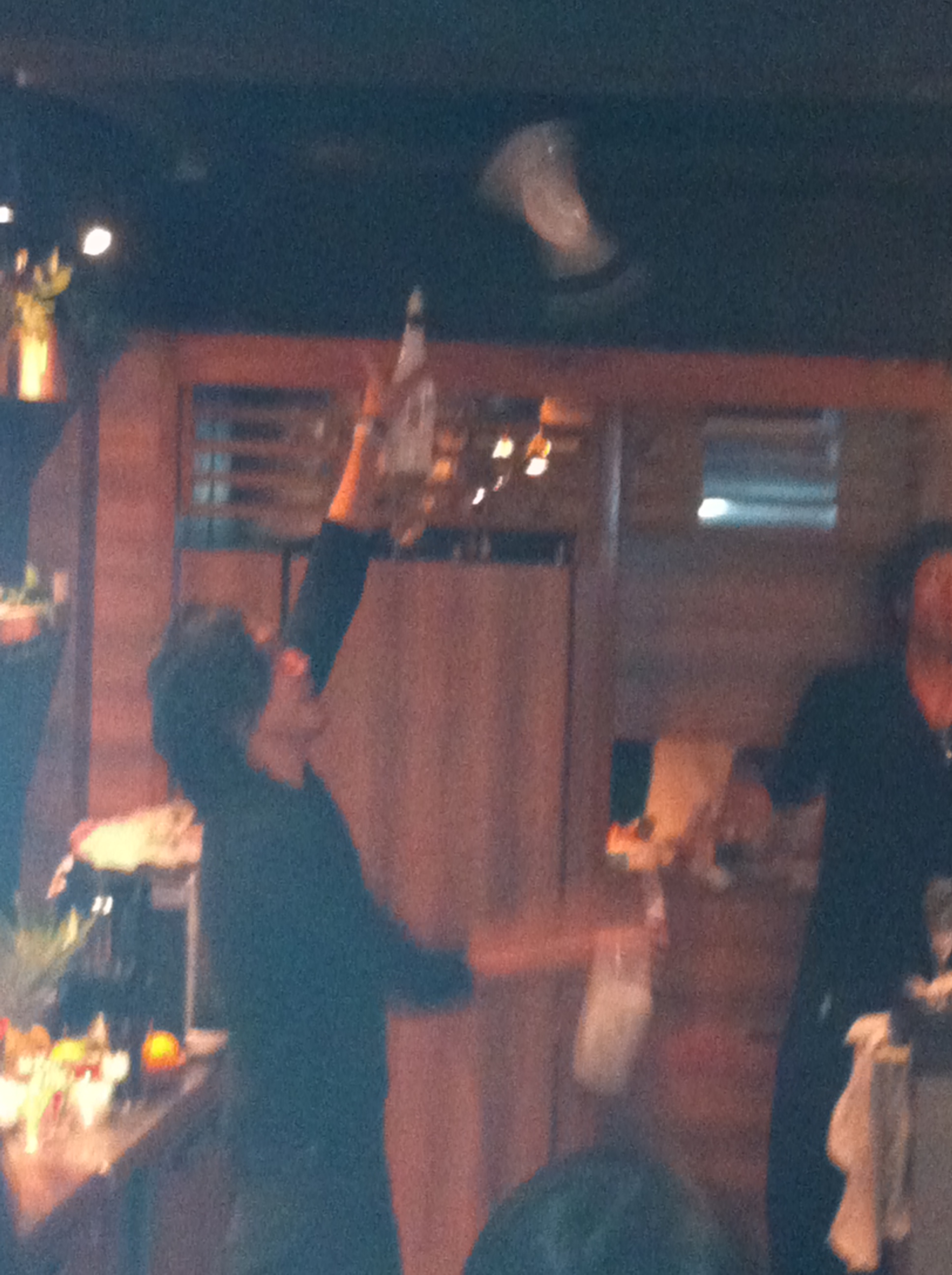 見づらくて申し訳ないのですが、彼はお酒のボトルを使ってパフォーマンスをする【フレアバーテンダー】として、2009年に日本人初世界一位に輝きました☆