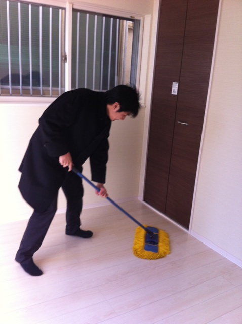 私の先輩の大里さんも、一生懸命モップ掛けをしております☆