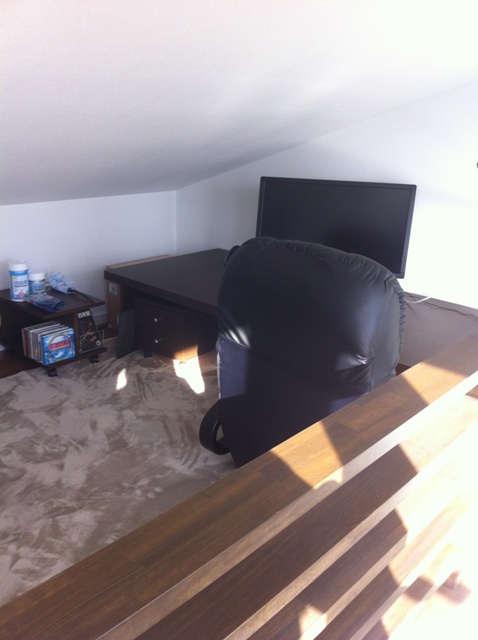 こちら2階建て物件のロフトなのですが、ローデスクと座イスにPCや本などを置いて、ご主人の書斎スペースとしてご利用なさっておりました♪