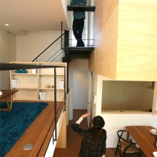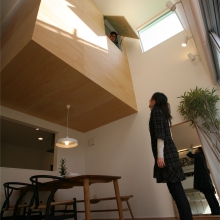 吹き抜けを設けたダイニングは、家族をつなぐパブリックな空間。