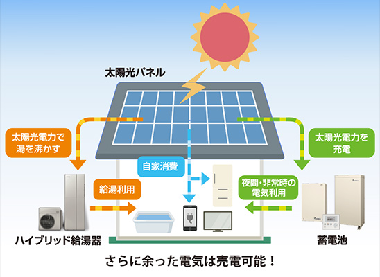 またZEH住宅搭載のハイブリッド給湯機では、余剰電気で昼間のうちにお湯を沸かして、夜間のガス代も節約することもできます。