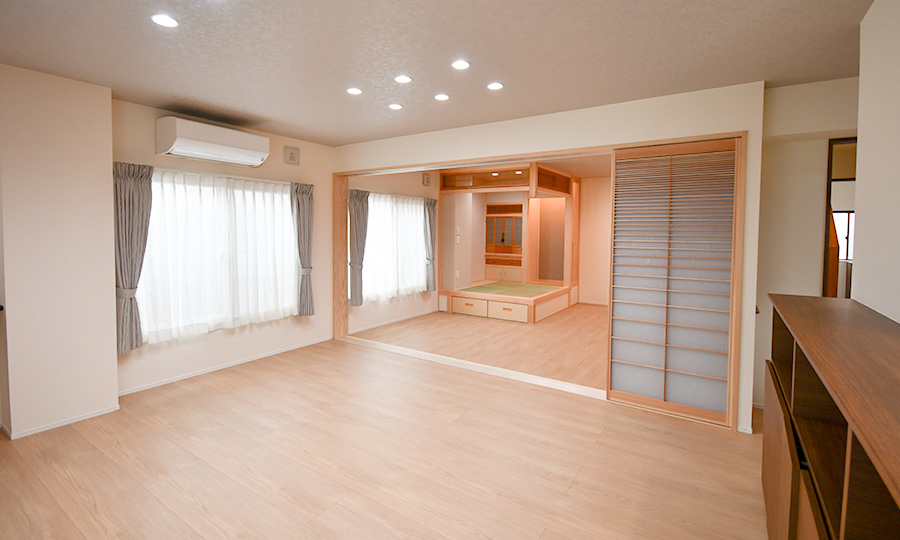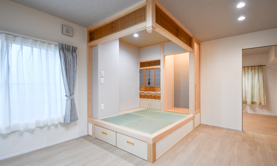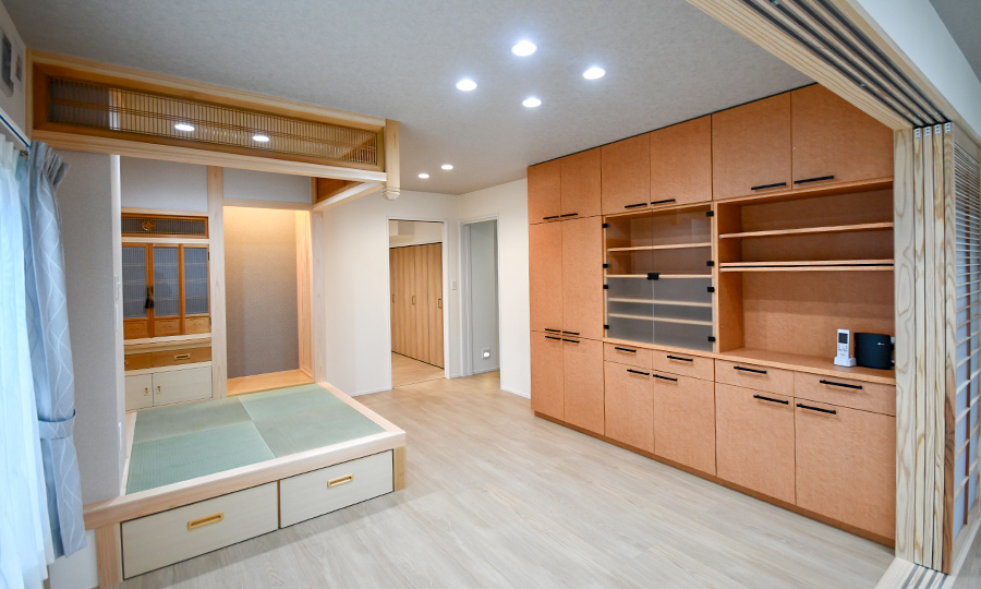 欄間や仏壇を再利用した小上がり和室を設けました。