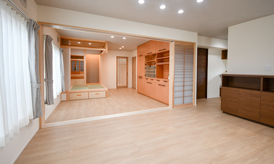 既存家具を活かした上質な空間に、植物好きの奥様のための花壇やスロップシンクも新設。階段下にはSICを造作し、間仕切りにはKITOTEの障子を採用した、心地よい住まいです。
