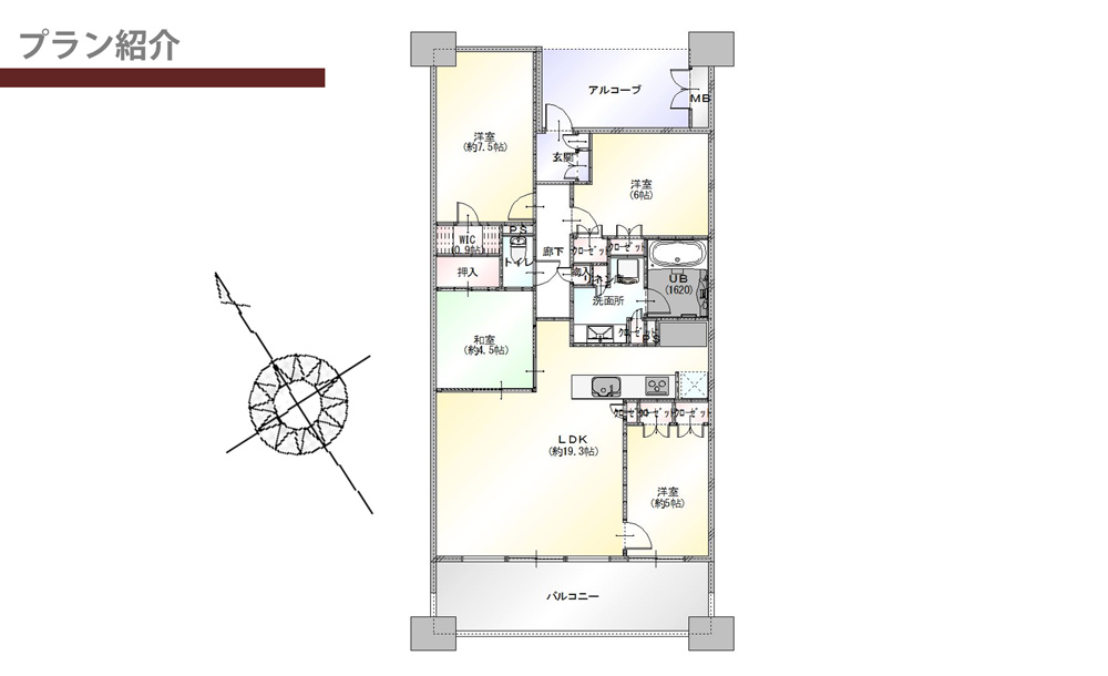 | 間取り | 4LDK+WIC+各居室収納+南西向きバルコニー |
