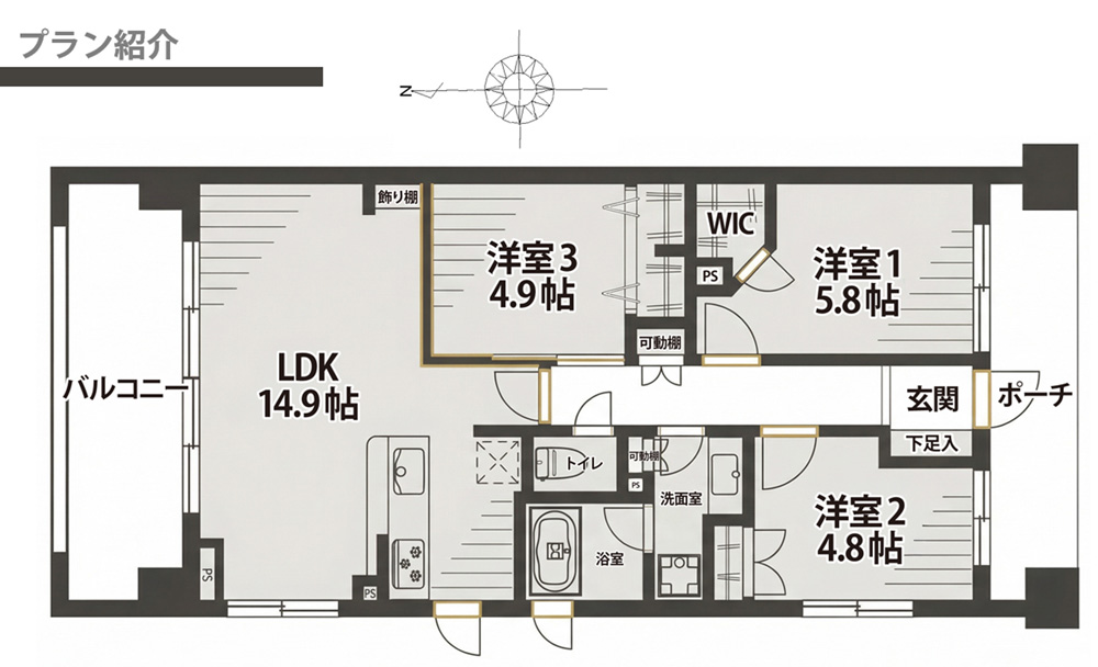 | 専有面積 | 71.82㎡(バルコニー面積12.60㎡) |
