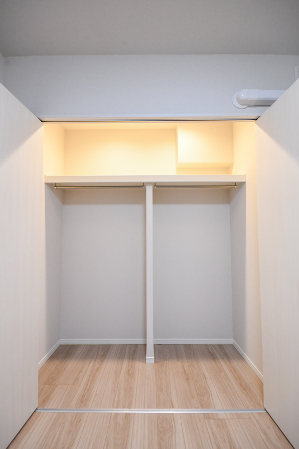 内装は、クロス・フローリング・建具を一新し、キッチン・バス・洗面・トイレなどの水回り設備もまとめて交換。さらに、エアコン・ダウンライトまで新設されており、すぐに快適に住める状態が整っています。各居室収納に加え、ウォークインクローゼットも完備。部屋が散らかりにくく、家族で暮らしても"すっきり片付く住まい"を叶えます。