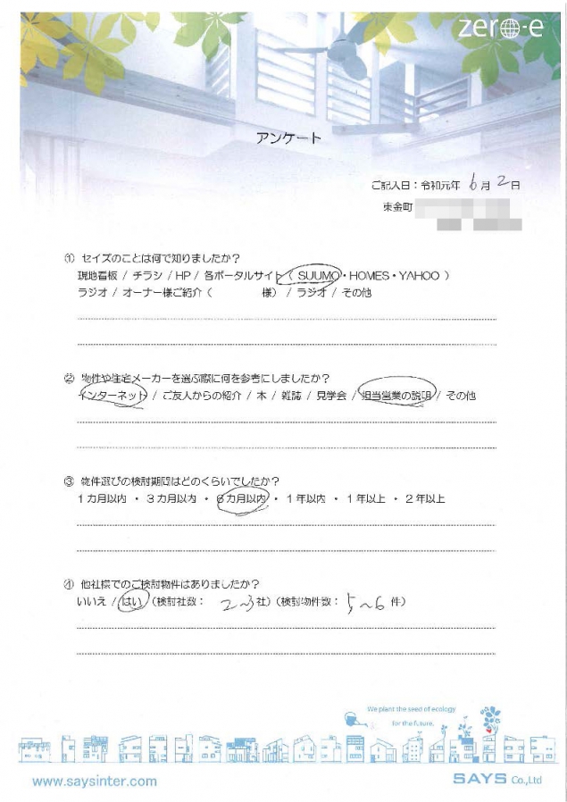 今まで見てきた戸建の中でセイズさんが一番だと直感で思いました。 間取りの住みやすさや大澤さんの対応がとてもよくてこれからも付き合っていきたいなと決断に至りました。 本当にありがとうございました!